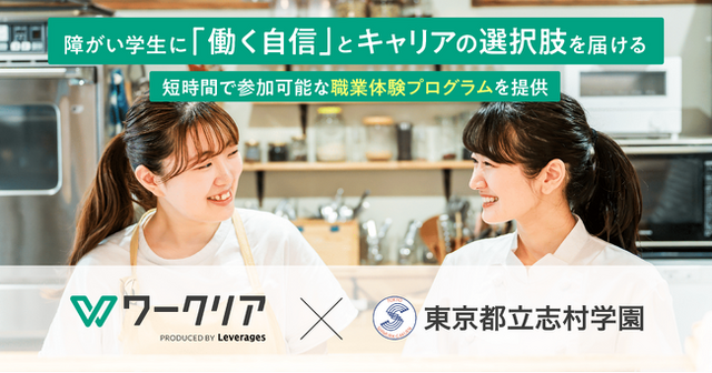 レバレジーズ株式会社が運営する障がい者就労支援サービス「ワークリア」( https://worklear.jp/ )は、特別支援学校「東京都立志村学園( https://shimuragakuen-sh.metro.ed.jp/site/zen/ )」に在籍する障がい学生を対象に、体調の波により長期的な実習参加が難しい生徒でも、安心して参加できる短時間職業体験プログラムを提供します。