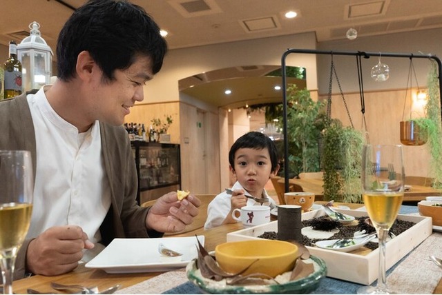 「小さな子どもと一緒だとコース料理を食べに行けない…」 そんな悩みを解消すべく、オーパークおごせでは小さなお子さまと一緒でもコース料理をお楽しみいただける座卓エリアを設けています。当館はコース料理ご注文に際しての年齢制限等を設けていません。レストラン内には、お子さまが楽しめるデジタルコンテンツも完備しています。ぜひ、家族みんなでゆっくりとお食事をお楽しみください。