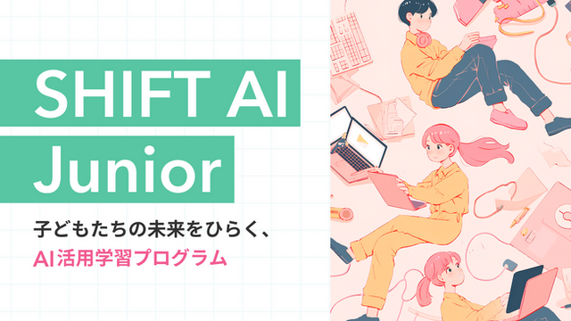 「日本をAI先進国に」を掲げ、利用者数No.1※のAI大学「SHIFT AI」を運営する株式会社SHIFT AI(東京都渋谷区、代表取締役 木内翔大)は、13歳以上のお子様を対象とした子どもたちが主体的にAIを使いこなし、未来を切り拓く力を育てる新プログラム「SHIFT AI Junior」を正式ローンチしたことをお知らせします。