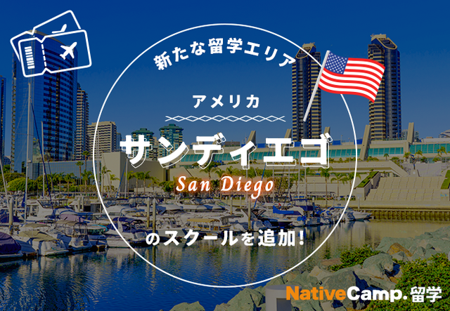 ネイティブスピーカーと回数無制限のオンライン英会話サービス「ネイティブキャンプ英会話」を展開する株式会社ネイティブキャンプ(東京都渋谷区 代表取締役: 谷川国洋)は、2025年9月25日(木)より海外留学エージェントサービス「ネイティブキャンプ留学」に、新たな留学エリアとして「アメリカ・サンディエゴ」のスクールを追加しました。
