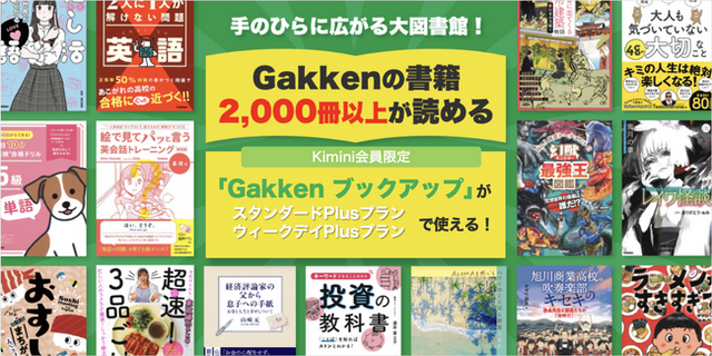 株式会社 学研ホールディングス(東京・品川/代表取締役社長:宮原博昭)のグループ会社で、オンライン英会話サービス「Kimini英会話」を提供している株式会社Glats(東京・品川/代表取締役社長:杉原聡)は、2025年8月28日(木)より、Kimini英会話の人気プラン「スタンダードPlusプラン」「ウィークデイPlusプラン」をアップグレードし、有料会員は、学研グループの電子書籍読み放題サービス「Gakkenブックアップ」を2025年11月30日(日)まで利用できるようにいたしました。