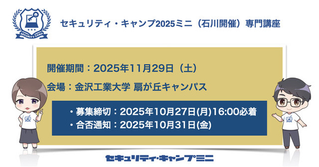 イベント詳細:https://www.security-camp.or.jp/minicamp/ishikawa2025.html