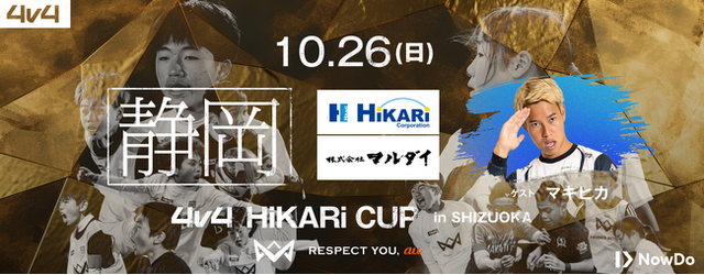 Now Do株式会社(所在地:東京都新宿区、代表取締役社長:本田圭佑)が運営する育成年代向け4人制サッカー大会「4v4」は、ゴールドランク大会「4v4 HiKARi CUP IN SHIZUOKA」を、2025年10月26日(日)に静岡県富士市にて開催することをお知らせいたします。スペシャルゲストには、サッカー系YouTuberマキヒカさんが来場いたします。