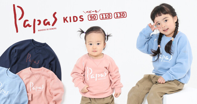 株式会社パパスが運営するメンズファッションブランド「Papas」から、男女兼用キッズサイズのトレーナー(スウェットシャツ)が発売されます。Papasとしては2020年以来5年ぶりとなるキッズの新作アイテムです。