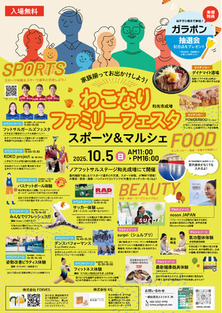 2025年10月5日(日)、ノアフットサルステージ和光成増(埼玉県和光市)にて「わこなりファミリーフェスタ スポーツ&マルシェ」を開催いたします。