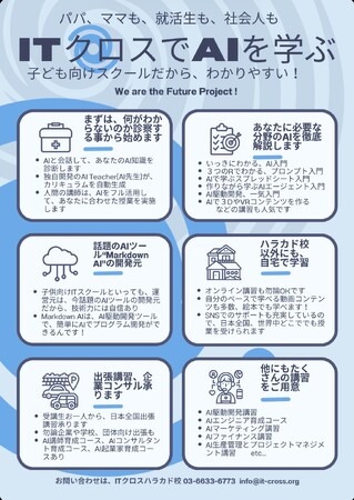 ITcrossハラカドでは、今後も「AI×教育」をテーマに、地域社会と連携した活動や、新しい体験型プログラムを継続的に発表してまいります。