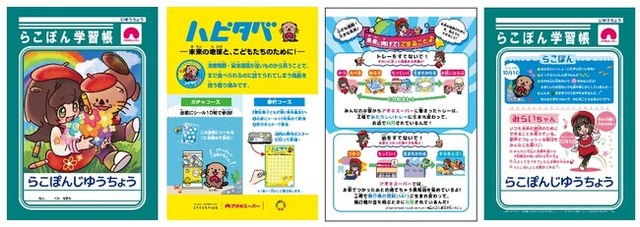学習帳のデザインには、『小さな挑戦!大きな未来♪』・『未来の地球のために!今できることを♪』をテーマに様々な活動をしているアオキスーパーの公式キャラクター『らこぽん』(らっこ)と『あおきみらい』ちゃんを採用し、親しみやすく楽しく学べる教材としました。