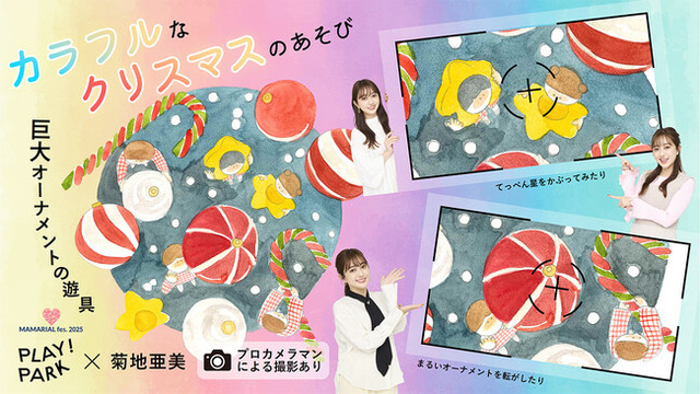 未知との出会いがコンセプト、子どもが自由な発想で遊べる屋内キッズパーク「PLAY! PARK(プレイパーク)」の企画・運営を行う、エイアンドビーホールディングス株式会社(本店:東京都目黒区、社長:野田 純)は、昨年12月に約2,000名が来場した、菊地亜美さんプロデュースの人気イベント「MAMARIAL fes.2025」に協力し、「カラフルなクリスマス」をテーマに、親子で楽しめるオリジナル遊具とワークショップを企画・制作することが決定しました。PLAY! PARKでは初となる、タレントとコラボレーションした提携イベントです。