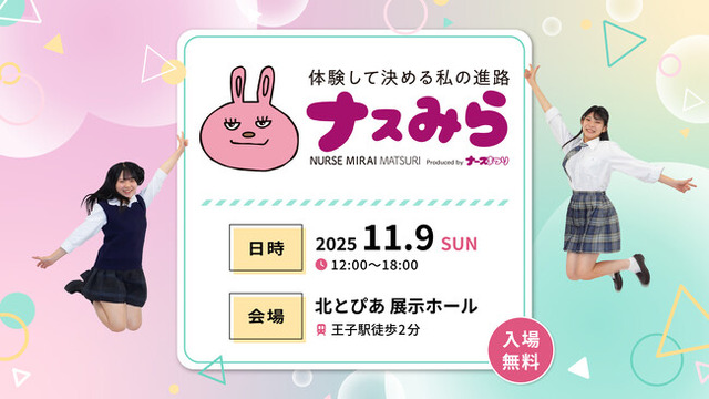 看護師支援事業を行うマインヘルスケア株式会社(所在地:熊本県宇城市、代表:西山 妙子)が運営するオンラインコミュニティ「ナースライフバランス研究室」の有志メンバーによるナースまつり実行委員会は医療・看護に興味がある、または看護師を目指す中高生とその保護者・教員を対象とした体験型無料イベント「ナスみら(ナース未来まつり)」を、2025年11月9日(日)に東京都北区・北とぴあにて初開催します。