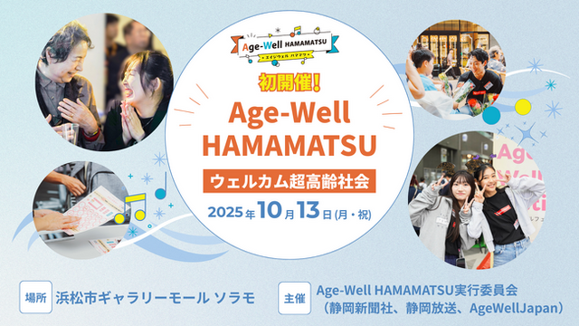 孫世代の相棒サービス「もっとメイト」や多世代コミュニティスペース「モットバ!」を展開する株式会社AgeWellJapan(本社:東京都渋谷区、代表取締役社長:赤木円香、以下「AgeWellJapan」)と株式会社静岡新聞社(以下「静岡新聞社」)、静岡放送株式会社(以下「静岡放送」)は、2025年10月13日、浜松市ギャラリーモール ソラモ、JR浜松駅北口広場キタラにて、多世代交流イベント「Age-Well HAMAMATSU」を開催します。