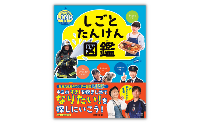 [画像2: https://prcdn.freetls.fastly.net/release_image/9728/2137/9728-2137-83b277300b2c4cad54057bbb3869c04b-970x600.png?width=536&quality=85%2C75&format=jpeg&auto=webp&fit=bounds&bg-color=fff ]「食べもの」「生きもの」「のりもの」「おしゃれ」「ものを作る」「人とかかわる」の6章構成で、子どもたちが自分の「好きなこと」から逆引きできる職業図鑑。7月刊行の『なぜなにからだ図鑑』に続く、「世界文化社のワンダー図鑑LINK(リンク)」シリーズの第2弾です。今を生きる子どもたちに必要な学びがつまった、4歳から小学校低学年向けの図鑑シリーズ。LINK での学びが、未来へのアクションにつながります。