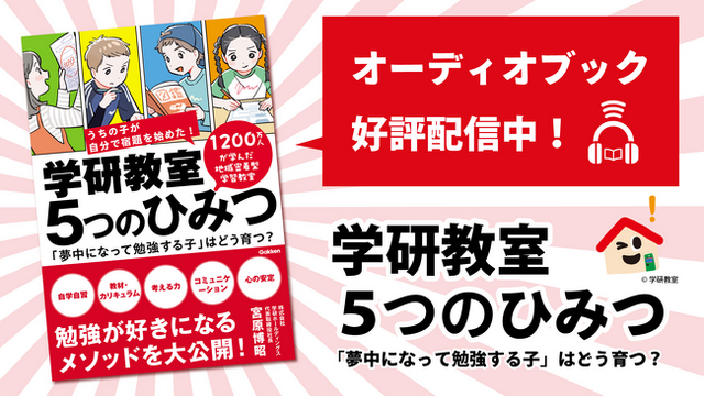 株式会社 学研ホールディングス(東京・品川/代表取締役社長:宮原博昭)のグループ会社、株式会社学研エデュケーショナル(東京・品川/代表取締役社長:川端篤)は、2025年9月1日に『学研教室 5つのひみつ「夢中になって勉強する子」はどう育つ?』のオーディオブック版を発売いたしました。