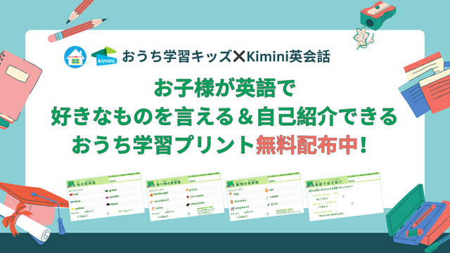 株式会社 学研ホールディングス(東京・品川/代表取締役社長:宮原博昭)のグループ会社で、オンライン英会話サービス「Kimini英会話」を提供している株式会社 Glats(東京・品川/代表取締役社長:杉原聡)は、2025年9月30日(火)より、人気無料プリント教材サイト 「おうち学習キッズ」 とタイアップし、英語学習が初めてのお子様向けに、英語で自分の好きなものを表現したり、自己紹介ができるようになるための学習プリントデータの無料配布を開始いたしました。