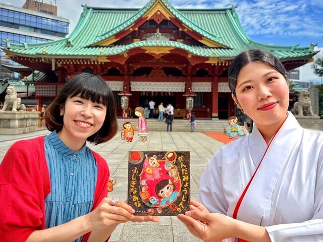 まつながもえ先生(左):絵本に登場するキャラクターは、みんな神社にゆかりのある仲間たち!ご近所にいるあの動物も…♪ぜひ、親子で絵本の世界をたのしんでほしいです! 神田明神巫女 萩谷来美(右):迷路やお絵描きができる参加型の絵本にしました。兄弟でお参りに来ていただいても一冊一冊が思い出になるように、お祭りのように楽しんで読んでいただけたら嬉しいです絵本には神社でお世話になっている講社の方々やまつなが先生の絵本に登場するキャラクターが登場します。是非探してみてください!