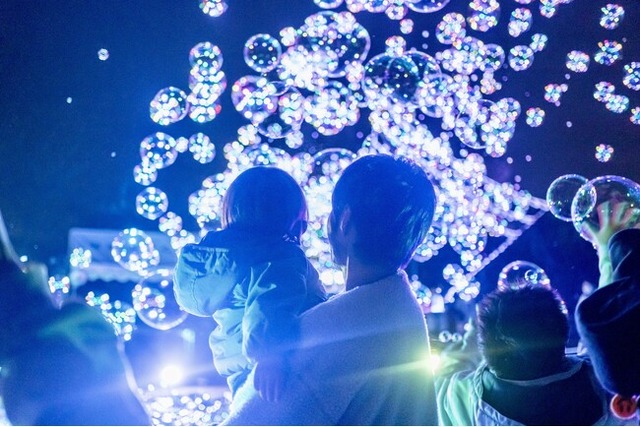 ◆シャボン玉と光のコラボレーション「ナイトバブル」福岡県在住のプロのシャボン玉師「しゃーぼんぼん」によるパフォーマンス。大小様々なシャボン玉と光のコラボレーションによって、幻想的な世界が広がります。儚くも美しい一瞬の芸術をご覧ください。