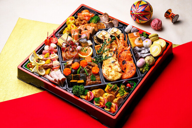 和食/ロブスター雲丹素焼き、ロブスター味噌焼き、筑前煮、和牛治部煮、梅人参、出汁巻き卵、蛸柔らか煮、薩摩芋、鶏ロール焼き、鮭塩焼き、鰯生姜煮、紅白なます、手毬麩、太巻き寿司、穴子寿司