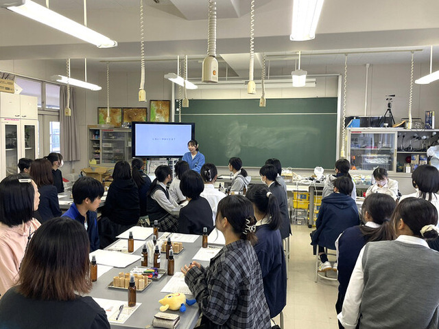 参加した生徒たちは、講師の話に熱心に耳を傾け、どの香りを組み合わせるか真剣な表情で試行錯誤しながら、楽しんでワークショップに取り組んでいました。