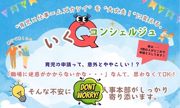 さらに、産前産後休業・育児休業に対する社員の「職場に迷惑をかけてしまうのではないか」「復帰後の仕事がどのようになるのか不安」「制度が分かりづらく申請が難しい」といった声をもとに、これまで以上に社員が安心してスムーズに休業を取得し職場復帰できるよう、2025年8月に、より細やかなサポートを実現するためのいくQコンシェルジュを設置しました。