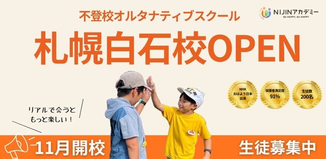 株式会社NIJIN(本社:東京都江東区、代表取締役:星野達郎)が運営する不登校オルタナティブスクール『NIJINアカデミー』は、2025年11月6日(木)、札幌市白石区に新拠点『NIJINアカデミー札幌白石校 MoBつくるシアター』を開校いたします。