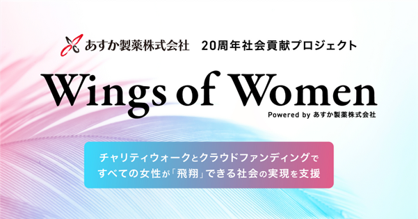 女性のからだとこころの健康をサポートする医薬品を提供するあすか製薬株式会社(本社:東京都港区、代表取締役社長:山口 惣大)は、創立20周年を記念し、女性の人生そのものに寄り添い、いきいきと活躍できる社会の実現を目指す新たな社会貢献プロジェクト『Wings of Women』を2025年10月1日(水)より開始します。