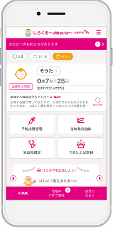 このたび、その一環として母子健康手帳アプリ『しらくる~shiracle~』を導入しました。妊娠中の健康管理から予防接種のスケジュール管理、お子さまの成長記録など気軽にご利用いただけるほか、子育てに関する情報もお届けしてまいります。