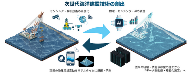 海洋における建設事業は、気象・海象や地盤条件など自然環境の不確実性に強く影響され、従来、施工・維持管理には特殊な専門技術と判断力が不可欠でした。一方、近年では、専門技術者の高齢化や担い手不足が深刻化しており、属人化している技術を次世代へ継承していくことが喫緊の課題となっています。