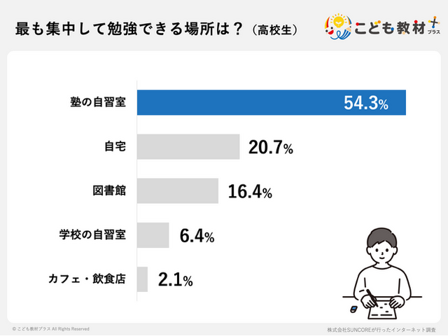 高校生の勉強場所、2位以下に大差をつけ「塾の自習室」がトップ