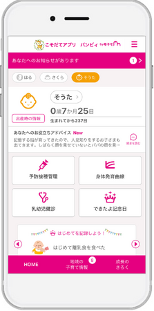 このたび運用が始まる『こそだてアプリ バンビィ』は妊娠・出産・育児など、ライフステージに応じた情報をお届けします。また、妊婦健診やお子さんの成長を記録できるほか、予防接種の管理もできますので、たいへん便利です。ぜひご活用ください。