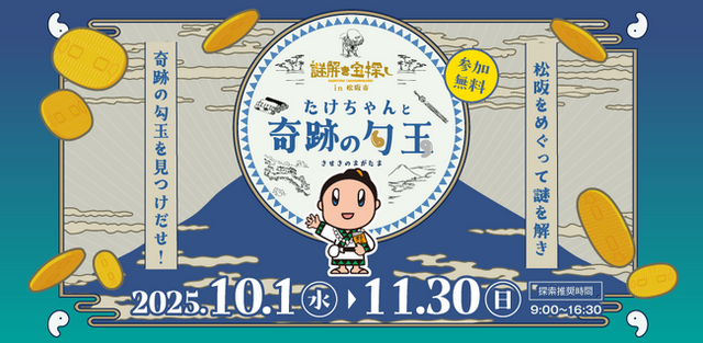 謎解きブランド「アソビプラネット」の運営や謎解き制作を手がける株式会社IKUSA(本社:東京都豊島区、代表取締役:赤坂大樹、以下IKUSA)は、2025年10月1日(水)~11月30日(日)まで、三重県松阪市内にて周遊型謎解き「謎解き宝探し in 松阪市 ~たけちゃんと奇跡の勾玉~」(主催:松阪市)を開催いたします。