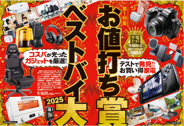さらに詳しい比較テスト結果やベストバイに選出した理由は誌面(家電批評25年11月号)をチェック! 晋遊舎のプレスリリースでは、今後も『家電批評』発行日に合わせて「BEST BUY」受賞アイテムを発信します。 お楽しみに!