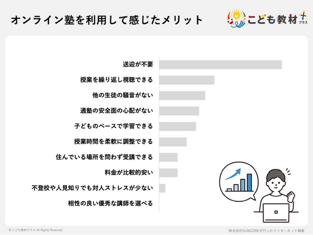 メリットの1位は「送迎不要」。保護者が実感する、オンライン塾の具体的な利点とは