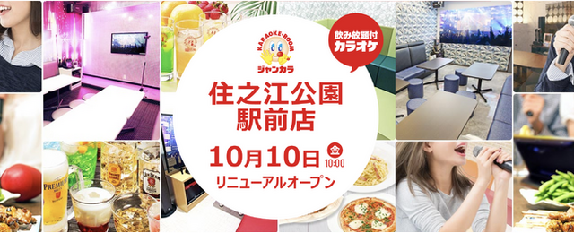全国で200店舗を展開し、西日本においてカラオケ業界最大規模を誇るジャンカラは、2025年10月10日、大阪市住之江区の「セルフジャンカラ 住之江公園駅前店」を「ジャンカラ 住之江公園駅前店」としてリニューアルオープンします。