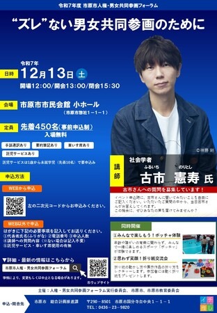 「市民誰もが、人権が尊重され、性別に関わりなく、社会の中でその個性と能力を十分に発揮でき、自分らしく生き生きと暮らしていけるいちはら」を実現するため、人権及び男女共同参画に関するフォーラムを開催します。