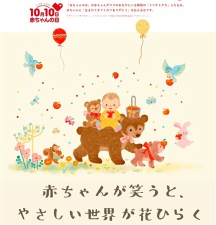 赤ちゃんの日が制定されて今年で15年目を迎えました。 10月10日『赤ちゃんの日』をきっかけに、子どもを産み育てやすい社会を目指す活動に多くの企業・団体様から賛同をいただき、取り組みを実施しています。