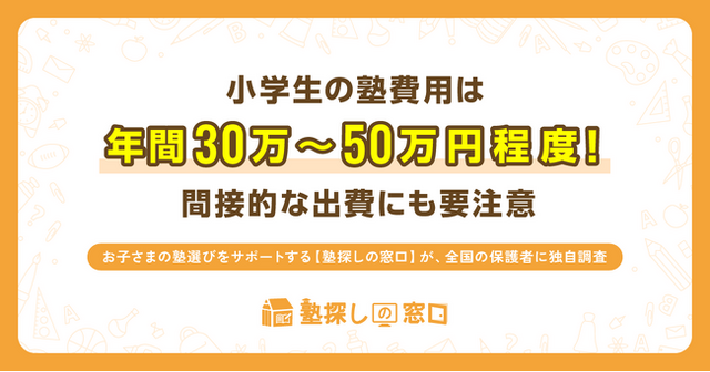 全国の塾情報を掲載し、保護者の方の効率的な塾選びをサポートする「塾探しの窓口」(運営会社:合同会社プラスワン、本社:東京都千代田区、代表:鳥澤昭平)は、小学生の通塾に関して「費用」の面から調査を行いました。