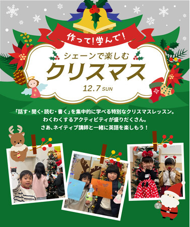 株式会社増進会ホールディングス(Z会グループ)のグループ会社、株式会社シェーンコーポレーション(本社:東京都新宿区 代表取締役社長:石谷雄也)が運営する英会話スクール「シェーン英会話」は、年少から小学6年生対象の1日完結型レッスン「作って!学んで!シェーンで楽しむクリスマス」を2025年12月7日(日)に開催します。レッスンはいずれも4名の少人数定員制。クリスマスをテーマに年齢に合わせたさまざまなアクティビティを通して、「話す・聞く・読む・書く」を集中的に楽しく学ぶレッスンです。11月24日(月・振休)までお申し込みを受け付けています。