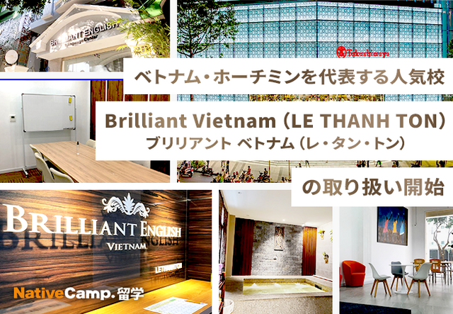 [画像5: https://prcdn.freetls.fastly.net/release_image/12419/946/12419-946-13acd189db14bffb59e46d674c8da4ae-1932x786.png?width=536&quality=85%2C75&format=jpeg&auto=webp&fit=bounds&bg-color=fff ]Brilliant Vietnam(LE THANH TON)紹介ページ:https://nativecamp.net/study_abroad/school/detail/85