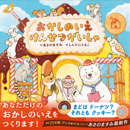 本作は累計25万部を突破している人気絵本「アニマルバス」シリーズの作者、あさのますみさんの最新作。絵は、温かみのある柔らかな表現が魅力のイラストレーター、しんたにともこさん。子どものころ誰もが憧れたことのある「おかしのいえ」をテーマに、ページをめくるたび、甘い香りがふわりと広がるような、夢いっぱいの世界が描かれます。「おかしに囲まれて暮らしてみたい」「こんな家を作ってみたい」という夢をかなえてくれる絵本です。