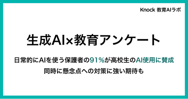 AIチューター「Knock」を運営するHanji株式会社(本社:東京都品川区、代表取締役CEO:村田洋佑)が運営する「Knock 教育AIラボ(https://note.com/knock_lab )」では、高校生の子どもを持つ保護者に対して、子どもの学習での生成AI活用についてアンケート調査を2025年9月に行ないました。以下、概要をご報告します。