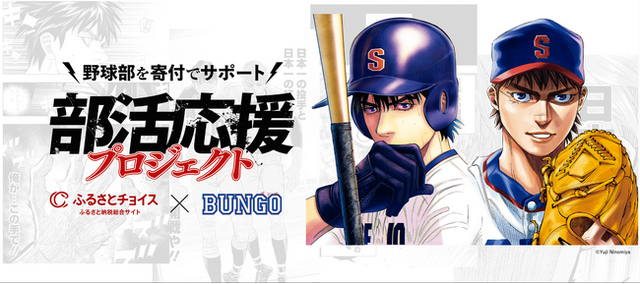 株式会社集英社の青年漫画誌「週刊ヤングジャンプ」編集部(本社:東京都千代田区、以下「集英社」)と株式会社トラストバンク(本社:東京都品川区、代表取締役社長兼CEO:大井 潤、以下「トラストバンク」)は、10月9日(木)、ふるさと納税を活用して全国の部活動を応援する「部活動応援プロジェクト」の第一弾を、人気野球漫画『BUNGO-ブンゴ-』(著・二宮裕次)と連携して開始します。