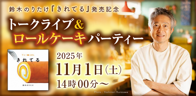 リアルなふわふわロールケーキに誘われてページをめくれば、「どうなるの?」と「そうなんだ!」が押し寄せる、インパクト抜群の内容はどのように生まれるのか? 絵本が好きな子供と大人は必聴の、のりたけさんのトークライブ。