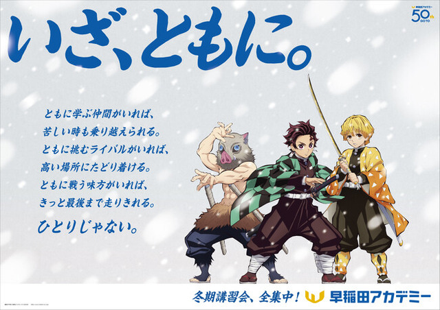 小学生・中学生・高校生を対象とした進学塾を運営する株式会社早稲田アカデミー(本社:東京都豊島区、代表取締役社長:山本 豊)は、夏期講習会広告に引き続き、冬期講習会広告として、本日よりアニメ「鬼滅の刃」とのコラボレーション第2弾を開始したことをお知らせ致します。本コラボレーション限定のWebムービー公開やSNS上でのキャンペーンをはじめ、勉強に取り組む子どもたちを応援するための様々な施策を展開予定です。