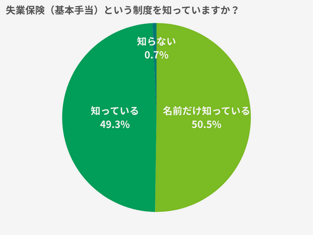 失業保険や傷病手当についてはどちらも「名前だけ知っている」が約50%、「内容も理解している」が約49%、「知らない」はわずか約1%という結果でした。