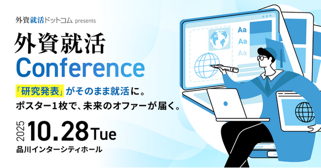 「世界で挑戦できる人材を育み、未来を創る」を掲げ、ユーザーファーストを追求したキャリアプラットフォーム「外資就活ドットコム」を運営する株式会社ハウテレビジョン(本社:東京都港区、代表取締役:音成洋介)は、2025年10月28日(火)に品川インターシティホールにて、理系大学院生の学会形式・逆求人イベント「外資就活Conference」を初開催いたします。