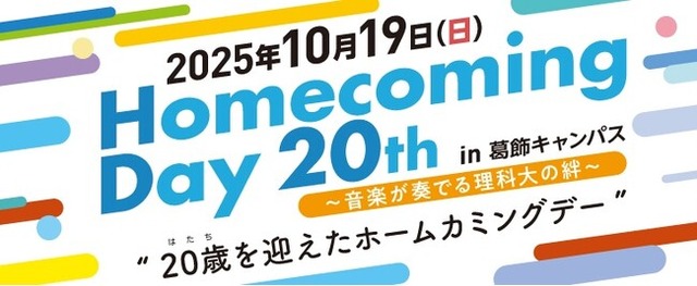 今年も10月19日(日)に、東京理科大学と理窓会(校友会)の共催による「ホームカミングデー20th」を開催いたします。2025年度のホームカミングデーは、ついに20周年を迎えます!