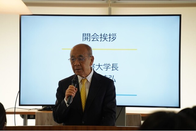 開会に際し、叡啓大学 有信睦弘 学長の挨拶にはじまり、叡啓大学産学官連携・研究推進センター長 早田吉伸 教授からプログラムの概要について説明がありました。