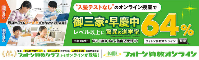 フォトン算数オンライン 受験コース・進学コース「”入塾テストなし”のオンライン授業で御三家・早慶中レベル以上に脅異の進学率64%」