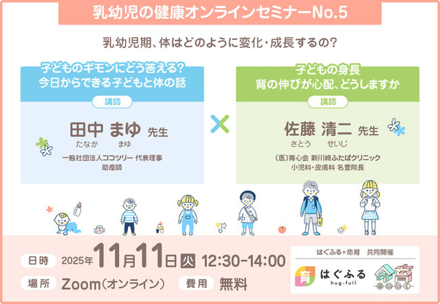 「はぐふる(C) 」(妊活~子育て中の方に向け専門家による医療・ヘルスケア情報を提供するサイト)は、性教育の情報を発信しているWEBサイト「命育」と共に、2社共同「乳幼児の健康オンラインセミナー」第5弾を開催いたします。