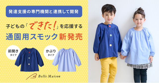 株式会社千趣会(本社:大阪市 代表取締役社長:鈴木聡 以下千趣会)の通販事業ベルメゾンは、一人で着脱しやすく、ボタン留めの練習に役立つ「タイプが選べる通園用スモック」(税込:1,490~2,490円)を、10月17日(金)よりベルメゾンネット(https://www.bellemaison.jp/ ) にて販売開始します。