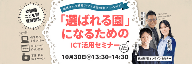 セミナー名:保護者の信頼感アップと業務効率化につながる!「選ばれる園」になるためのICT活用セミナー